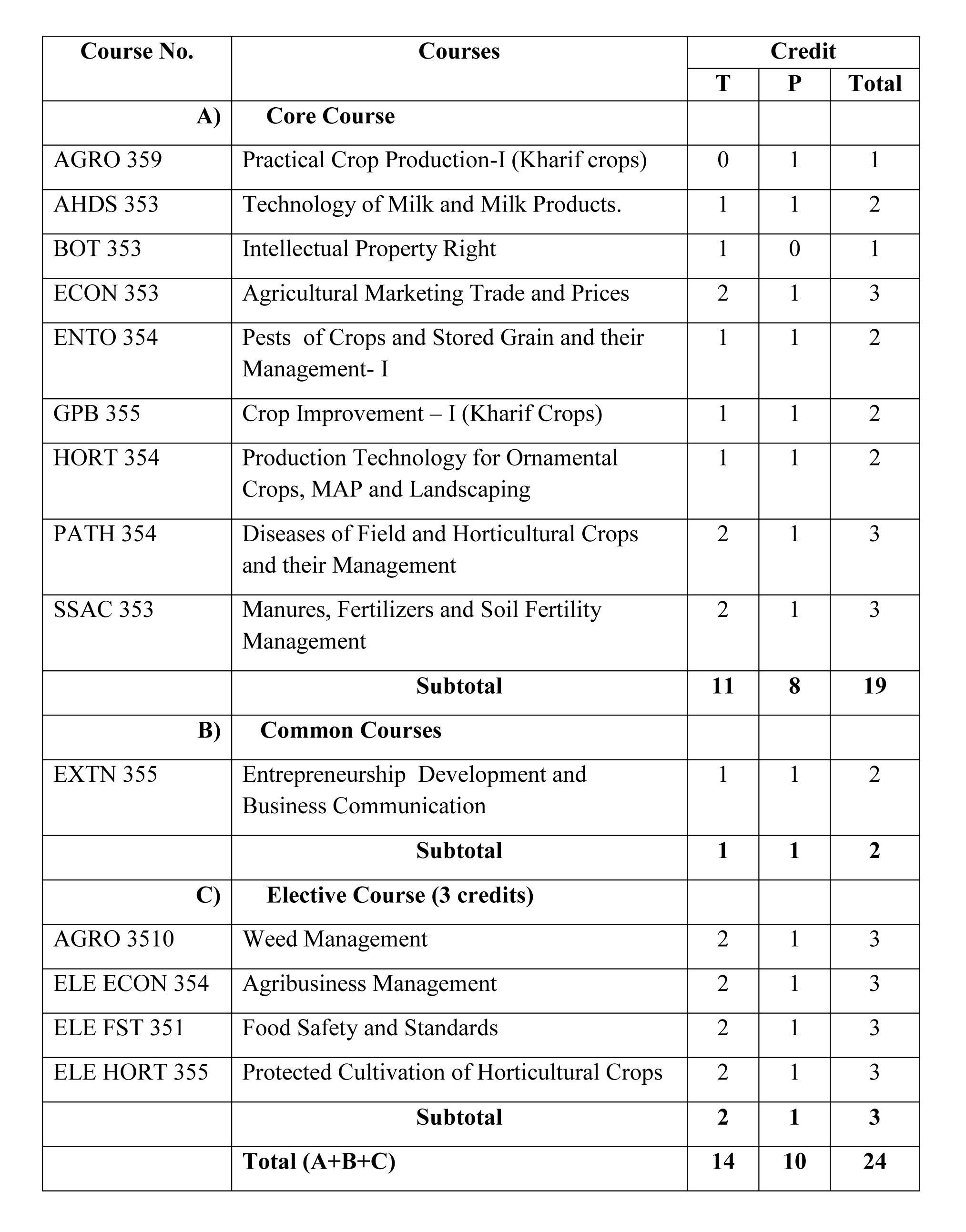 AGRO 234 | Crop Production Technology-I (Kharif crops) | 1 | 1 | 2 |